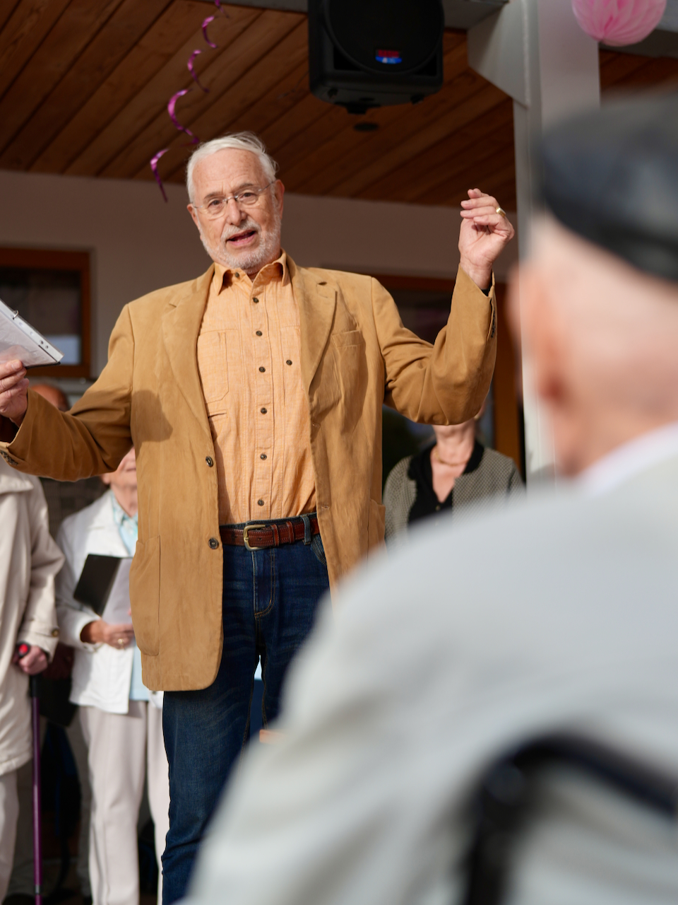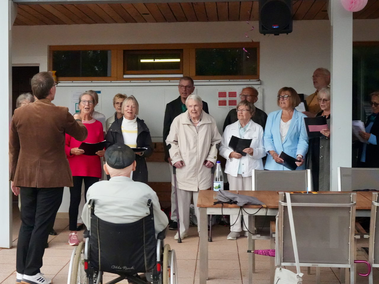 - Kurt Vogel lauscht dem Chor der Volkslieder zu seinem Geburtstag intonierte