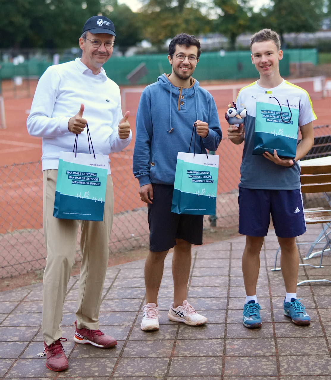 Das letzte After Work Turnier des Jahres stand im Zeichen des 95. Geburtstag von Clublegende Kurt Vogel. Nach einem kurzen Kulturprogramm mit Chor und Gedicht wurde Kurt vom Vizepräsidenten Henry Rahn zum Ehrenspielführer der ersten Herren-Mannschaft ernannt. Aus seinen Händen erhielt er als Zeichen dieser Ehrung das passende Mannschaftstrikot. Nach bewegenden Worten des Jubilars und der Laudatio von Turnierdirektor Steffen Kretschmar starteten für die 34 Teilnehmerinnen und Teilnehmer die bunten Doppel- und Mixed-Matches. Auf Grund des einsetzenden Regens konnten nur zwei Runden absolviert werden. Trotzdem gab es nach knapp einer Stunde Sieger und Platzierte. Der wohl bisher jüngste Gewinner war Philip Hörsch, der sich vor dem nächsten Talent Hermann Wilde und Routinier Michael Zapfe den „Vogel Fridolin“ sichern konnte. Bei zünftigen Rostern, Bräteln und Grillkäse, meisterlich von Bratmeister Olaf aufgelegt, sowie leckerem Kartoffelsalat wurde die abwechslungsreiche Sommersaison ausgewertet und begossen.