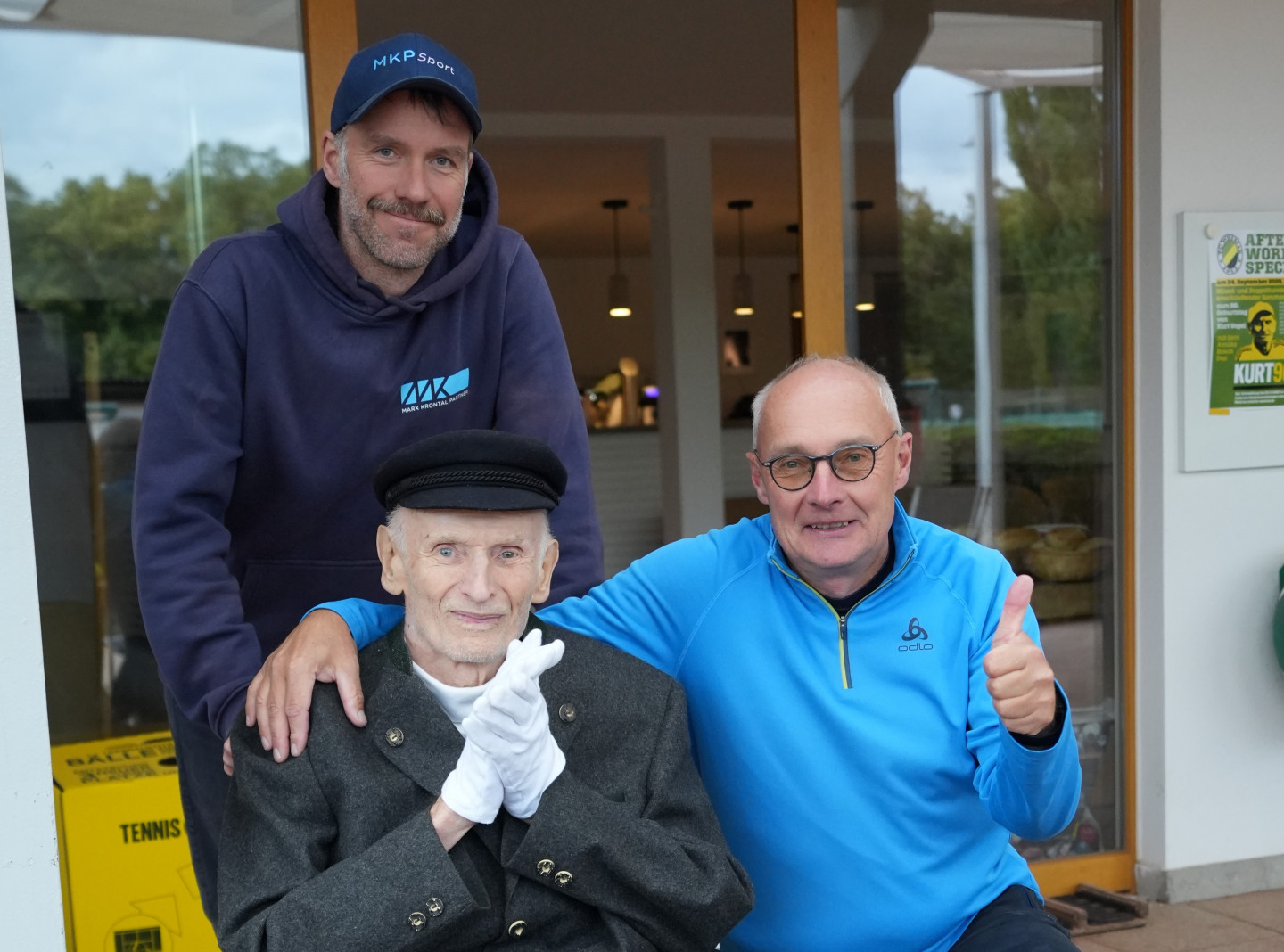 Am 24. September gab es einiges zu feiern. Im Mittelpunkt des Abends stand der 96jährige Kurt Vogel, der alle After Work Teilnehmer und weitere Gäste auf die Tennisanlage eingeladen hat. Er und seine Söhne stellten nicht nur leckere Schnittchen und Kaltgetränke bereit sondern spendete 1.000 € an den Club.