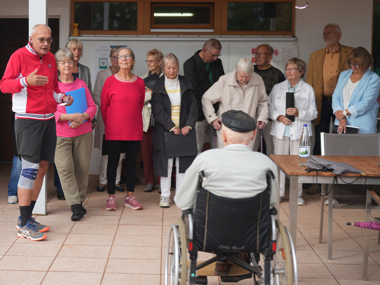 Das letzte After Work Turnier des Jahres stand im Zeichen des 95. Geburtstag von Clublegende Kurt Vogel. Nach einem kurzen Kulturprogramm mit Chor und Gedicht wurde Kurt vom Vizepräsidenten Henry Rahn zum Ehrenspielführer der ersten Herren-Mannschaft ernannt. Aus seinen Händen erhielt er als Zeichen dieser Ehrung das passende Mannschaftstrikot. Nach bewegenden Worten des Jubilars und der Laudatio von Turnierdirektor Steffen Kretschmar starteten für die 34 Teilnehmerinnen und Teilnehmer die bunten Doppel- und Mixed-Matches. Auf Grund des einsetzenden Regens konnten nur zwei Runden absolviert werden. Trotzdem gab es nach knapp einer Stunde Sieger und Platzierte. Der wohl bisher jüngste Gewinner war Philip Hörsch, der sich vor dem nächsten Talent Hermann Wilde und Routinier Michael Zapfe den „Vogel Fridolin“ sichern konnte. Bei zünftigen Rostern, Bräteln und Grillkäse, meisterlich von Bratmeister Olaf aufgelegt, sowie leckerem Kartoffelsalat wurde die abwechslungsreiche Sommersaison ausgewertet und begossen.